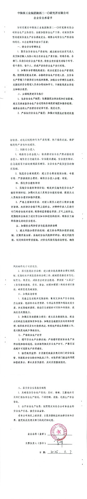 中陜核工業(yè)集團(tuán)陜西二一〇研究所有限公司企業(yè)安全承諾書