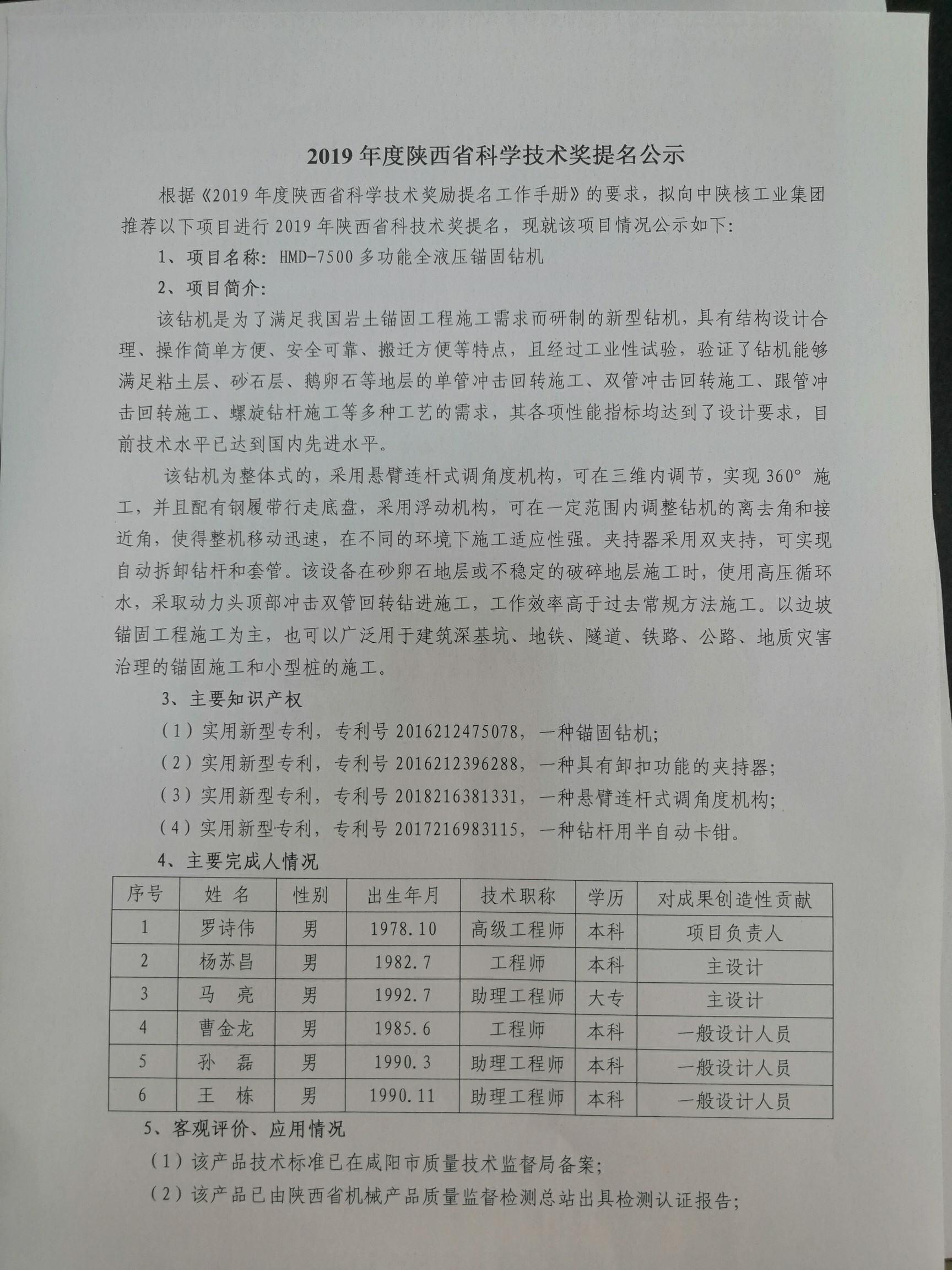 2019年度陜西省科學(xué)技術(shù)獎(jiǎng)提名公示