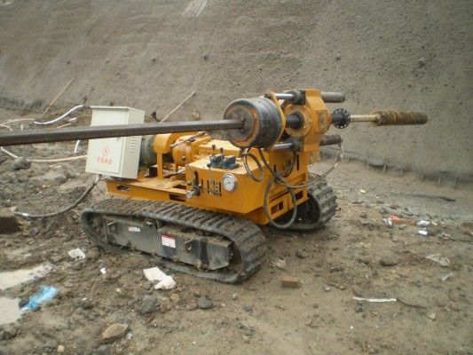HXY-500履帶式錨桿鉆機(jī)是我公司根據(jù)近年來工程建設(shè)需要而專門生產(chǎn)的一種多功能鉆機(jī)。它是一種機(jī)械傳動(dòng)、液壓給進(jìn)、履帶行走專門用于工程錨桿施工的新型鉆機(jī),其工藝適應(yīng)性較強(qiáng),使用范圍廣,應(yīng)用于水文水井鉆進(jìn)、堤壩注漿、樁基孔工程鉆進(jìn),也可應(yīng)用于地表和坑道通風(fēng)、排水工程施工,對固體礦床進(jìn)行金鋼石鉆進(jìn)和硬質(zhì)合金鉆進(jìn)。預(yù)留卷揚(yáng)機(jī)安裝空間,以實(shí)現(xiàn)工程及地質(zhì)鉆進(jìn)的不同需要,動(dòng)力系統(tǒng)可根據(jù)用戶訂貨配備22千瓦電動(dòng)機(jī)或柴油機(jī)。(見外型圖1)