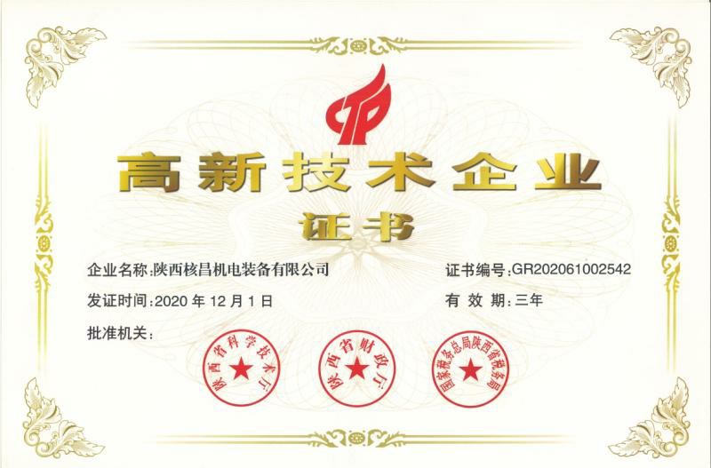 近日,根據國家《高新技術企業(yè)認定管理辦法》和《高新技術企業(yè)認定管理工作指引》的相關規(guī)定,通過對企業(yè)知識產權、科技成果轉化能力、企業(yè)經營成長性指標等項目的嚴格評審,陜西核昌...