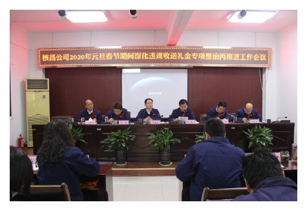 1月18日,核昌公司在公司大會議室召開了2020年元旦春節(jié)期間深化違規(guī)收送禮金專項整治再推進工作會,專題部署了公司下一步的專項整治工作,公司領(lǐng)導(dǎo)班子成員、全體中層干部參加了會議...