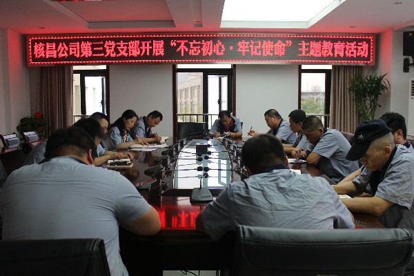 2019年7月8日上午,核昌公司第三黨支部召開“不忘初心、牢記使命”主題教育會(huì),支部委員及全體黨員參加,會(huì)議由支部書記羅詩偉主持。會(huì)議首先由支部紀(jì)檢委員萬亞軍宣讀了公司“不忘初...