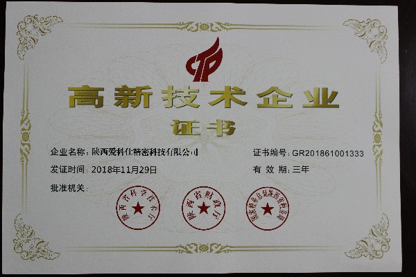 近日,核昌公司控股子公司陜西愛(ài)科仕精密科技有限公司經(jīng)由陜西省科學(xué)技術(shù)廳、陜西省財(cái)政廳及國(guó)家稅務(wù)總局陜西省稅務(wù)局組成的陜西省高新技術(shù)企業(yè)認(rèn)定管理工作領(lǐng)導(dǎo)小組評(píng)審,榮獲陜西省...