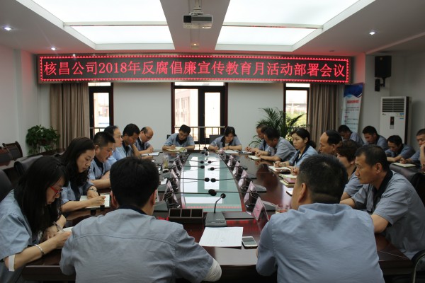 2018年5月25日,為深入落實(shí)全面從嚴(yán)治黨,嚴(yán)守黨的規(guī)矩,增強(qiáng)黨員干部廉潔自律意識(shí),推動(dòng)公司監(jiān)察工作又好又快發(fā)展。核昌公司召開2018年反腐倡廉宣傳教育月活動(dòng)部署會(huì)議。核昌公司領(lǐng)導(dǎo)...