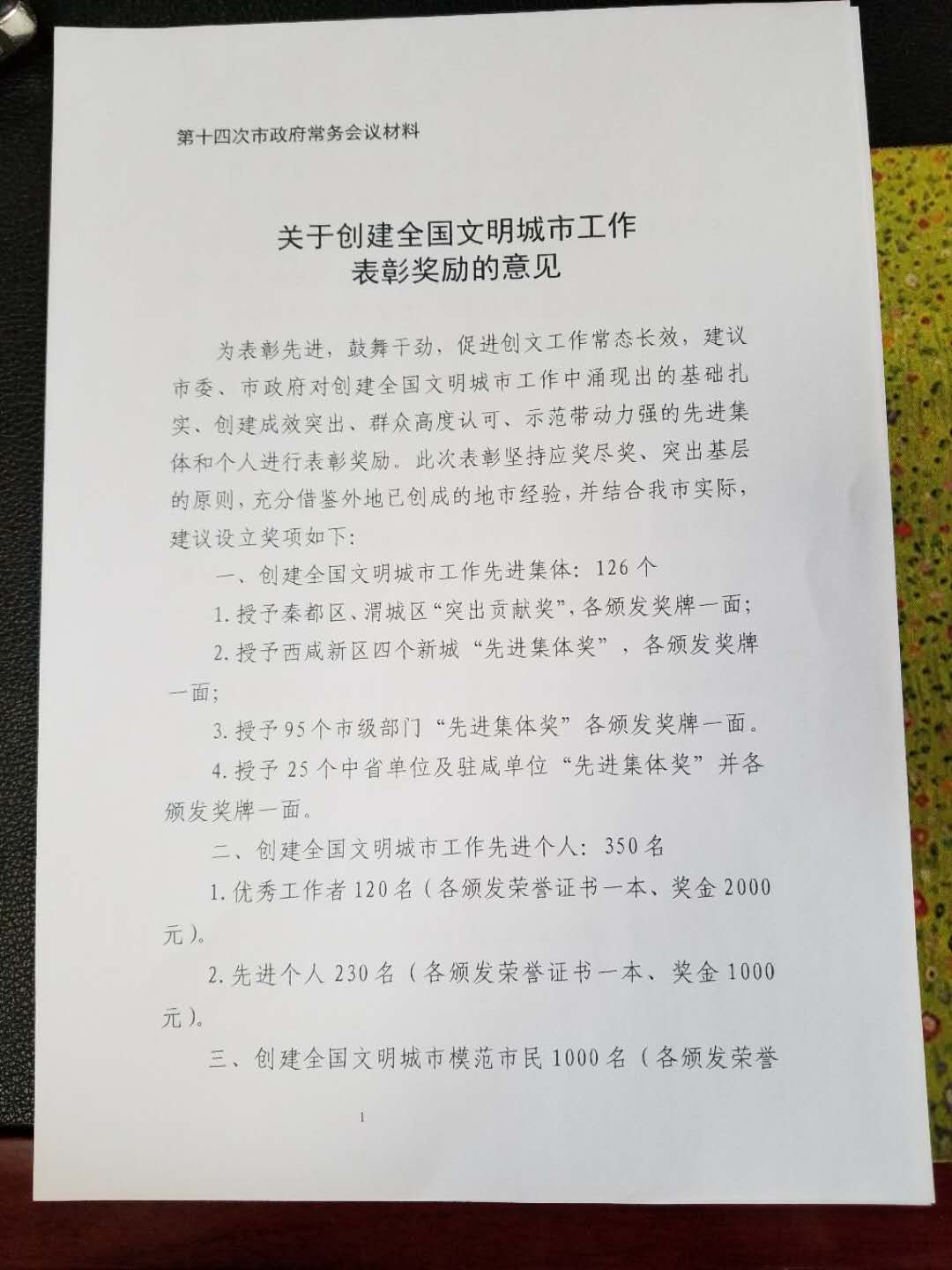 2017年12月8日,咸陽市精神文明建設(shè)指導(dǎo)委員會(huì)發(fā)文決定,對(duì)在咸陽市創(chuàng)建文明城市工作中,做出突出貢獻(xiàn)成績單位和個(gè)人進(jìn)行表彰和獎(jiǎng)勵(lì)。咸陽 ...