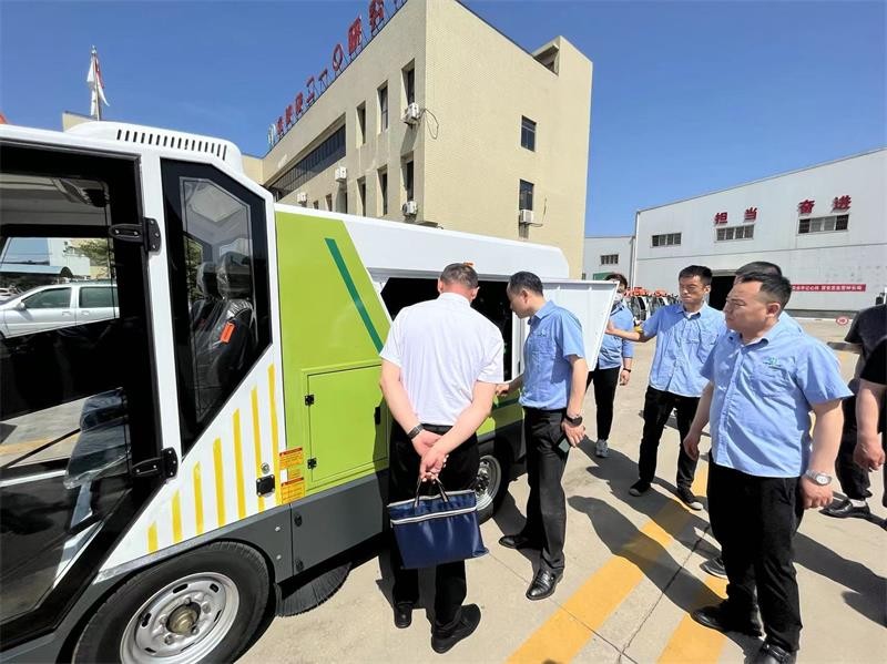 首先,白亞偉一行先行參觀了公司生產(chǎn)區(qū),深入現(xiàn)場實地了解新能源清掃車系列產(chǎn)品的研發(fā)、生產(chǎn)、銷售及主推產(chǎn)品性能、特點、適用范圍等情況。隨后,在會議室進行座談。