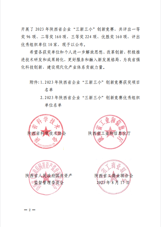 日前,陜西省科學技術協(xié)會公布了2023年陜西省企業(yè)“三新三小”創(chuàng)新競賽評審結果,核昌公司申報的創(chuàng)新項目分獲二等獎、三等獎共計3個獎項,從數(shù)量和質量上都有所突破,這是公司自2022年度以來連續(xù)第2年獲得此項榮譽。