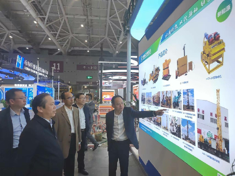 展會(huì)上,公司黨委書(shū)記、董事長(zhǎng)王超宏向集團(tuán)公司一行領(lǐng)導(dǎo)及觀展人員詳細(xì)介紹了參展設(shè)備的性能、主要特點(diǎn)及適用范圍。參展的HXY系列拖車(chē)鉆機(jī)組是專門(mén)針對(duì)砂巖鈾礦地質(zhì)勘探和開(kāi)采孔研制的升級(jí)產(chǎn)品,在人機(jī)協(xié)調(diào)、安全性、操控性能上得到了充分提高,杜絕了全液壓巖心鉆機(jī)功耗大、維修要求高的缺點(diǎn),能夠滿足繩索取心的工藝要求。與國(guó)內(nèi)外同類鉆機(jī)相比,在進(jìn)尺速度、上下鉆速度、孔底壓力控制、鉆進(jìn)參數(shù)顯示和控制方面具有顯著的特點(diǎn)。目前,該系列產(chǎn)品已廣泛應(yīng)用于核工業(yè)203所、核工業(yè)243大隊(duì)、核工業(yè)208大隊(duì)等野外施工。