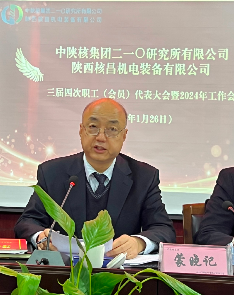 蒙曉記書記代表中陜核集團對陜西核昌機電裝備有限公司三屆四次職工(會員)代表大會的召開表示祝賀,對2023年的工作給予充分肯定,對未來工作給予期許,并提出四項要求:一是要牢記初心,發(fā)揮堡壘作用;二是要壓實創(chuàng)效責任,推進生產(chǎn)經(jīng)營;三是要明責于身,推進黨風廉潔;四是要凝神聚力,做好新一年謀劃工作。