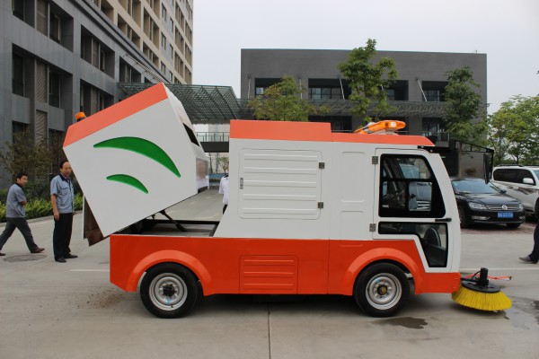 核昌公司在2014年與咸陽(yáng)市公路局合作研發(fā)生產(chǎn)的第一代電動(dòng)清掃車(chē),于2015年6月將15臺(tái)電動(dòng)清掃車(chē)成功交付。以此為契機(jī),在第一代的基礎(chǔ)上進(jìn)行技術(shù)改進(jìn),提高了機(jī)械零部件加工精度,車(chē)輛行駛更加平穩(wěn),上料機(jī)構(gòu)結(jié)構(gòu)簡(jiǎn)化并增加防塵,減小了工作噪音,電機(jī)的可靠性得到改進(jìn),大大減少了非作業(yè)時(shí)段對(duì)機(jī)器必要的磨損,極大延長(zhǎng)機(jī)器使用壽命。第二代電動(dòng)清掃車(chē)于2015年8月23日成功誕生,經(jīng)廠內(nèi)測(cè)試基本功能運(yùn)行正常,8月24日2臺(tái)電動(dòng)清掃車(chē)在中陜核工業(yè)集團(tuán)公司進(jìn)行現(xiàn)場(chǎng)演示,使用效果良好。