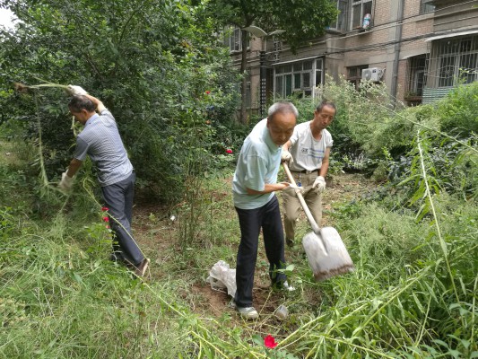 在清理過(guò)程中,不論是年齡大的還是年輕的,都是齊心協(xié)力,互相配合,干勁十足。清理垃圾、修剪樹(shù)木、拔草等各項(xiàng)工作井然有序。雖然中很臟、很苦、很累,但沒(méi)有一個(gè)人抱怨。