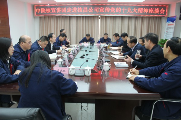 12月7日上午,集團(tuán)公司第四宣講團(tuán)成員到核昌公司宣講黨的“十九大”精神,公司黨委書記、董事長(zhǎng)王超宏主持宣講報(bào)告會(huì),集團(tuán)第一巡察組組長(zhǎng)、宣講人王建峰做宣講報(bào)告,公司領(lǐng)導(dǎo)班子成員、中層干部、各黨支部書記、黨員代表、職工代表、生產(chǎn)一線骨干及員工代表近六十人聆聽宣講報(bào)告。