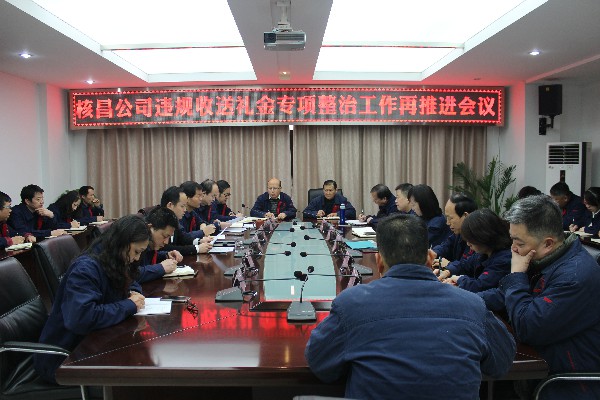 3月8日上午,核昌公司黨委在公司小會議室組織召開違規(guī)收送禮金專項整治工作再推進會議。參會人員有領導班子成員,各支部書記及中層以上干部,本次會議由公司紀委書記梁英平主持。