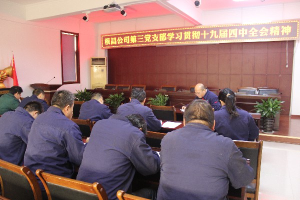 2019年12月20日,核昌公司各黨支部分別組織開展黨的十九屆四中全會精神宣講,會議由各黨支部書記主持,公司領(lǐng)導(dǎo)班子成員分別在各黨支部開展宣講。
