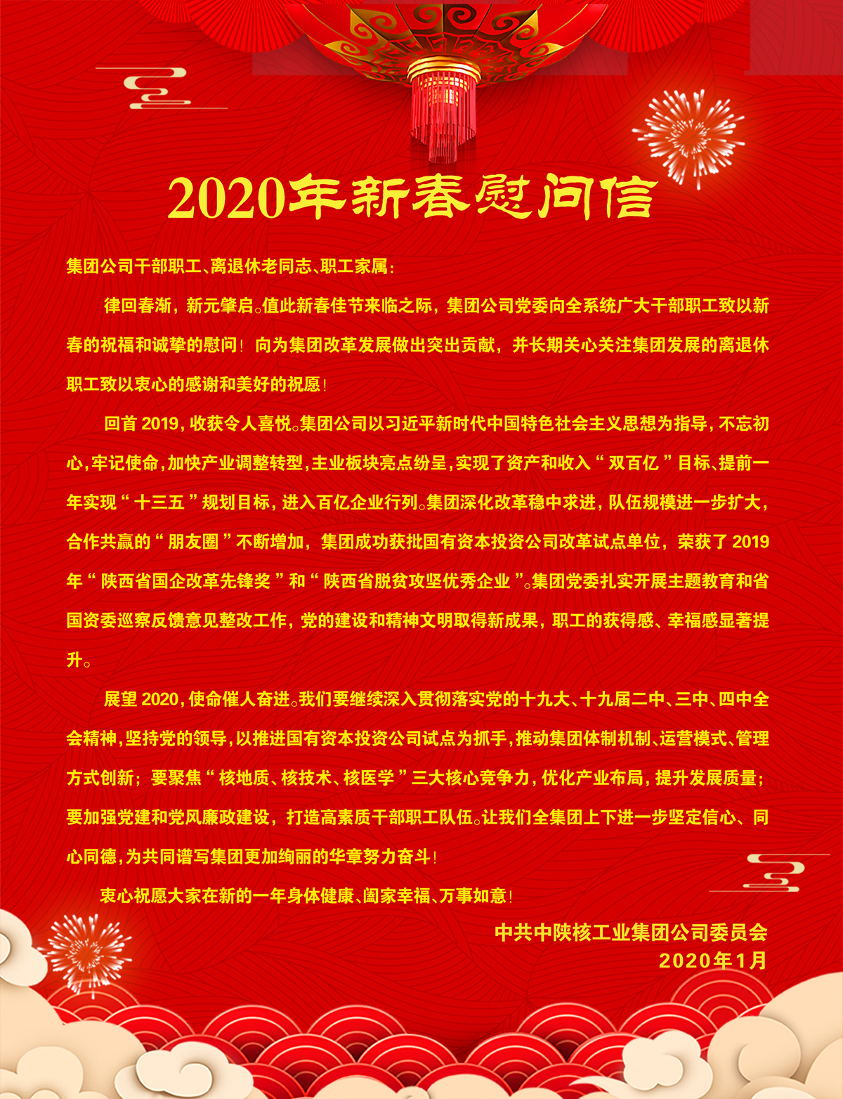 中陜核工業(yè)集團2020年新春慰問信