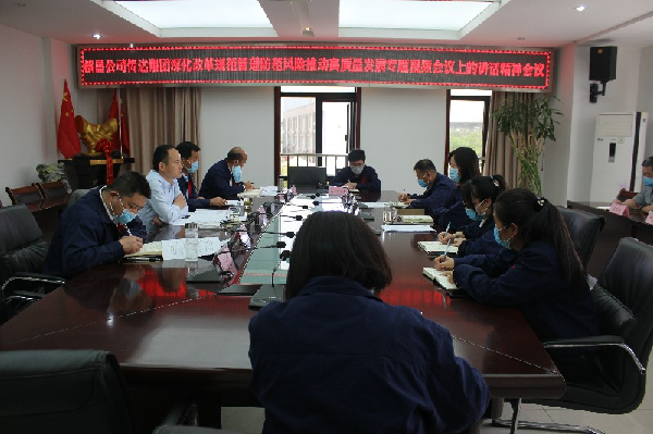 最后,黨委副書記、總經(jīng)理楊昭傳達了集團公司黨委書記、董事長張斌成在集團深化改革規(guī)范管理防范風(fēng)險推動高質(zhì)量發(fā)展專題視頻會議上的講話精神。結(jié)合公司生產(chǎn)經(jīng)營實際情況,從提高站位、突出重點、規(guī)范管理、精準(zhǔn)施策四方面進行解讀。