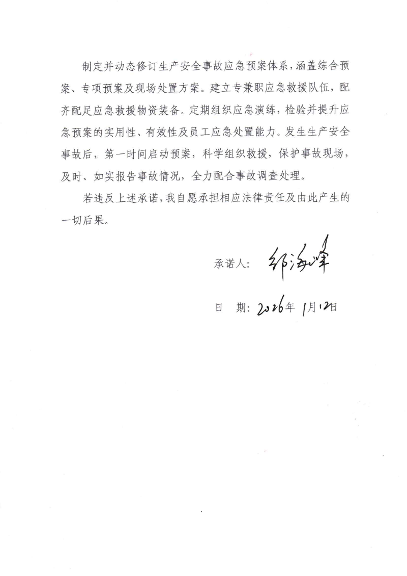 二一〇所主要負(fù)責(zé)人安全承諾書