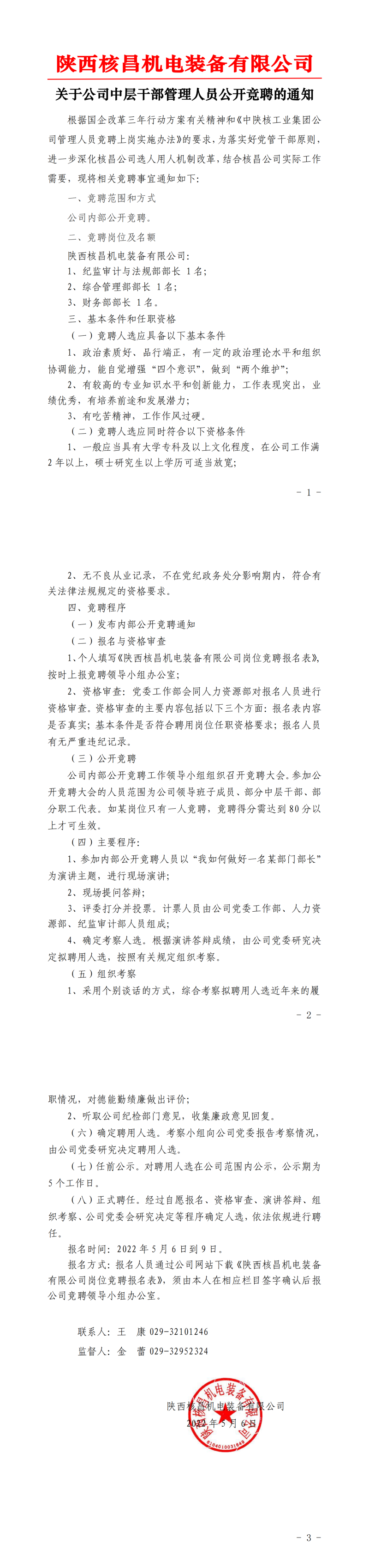 關(guān)于公司中層干部管理人員公開競聘的通知